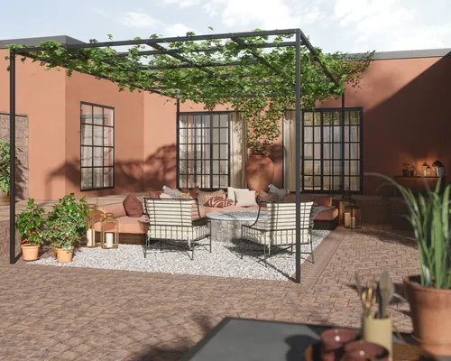 Bruk varme og lune farger som passer både omgivelsene og alle fasadefarger – da blir uterommet ditt skikkelig lunt og hyggelig!