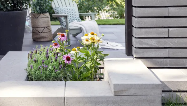 Modul mur er en stram og stilren mur som passer svært godt til å lage blomsterbed. Det et også mulig å bruke Modul mur, slik at du kan få levegg og blomsterbed i ett og samme byggverk. Her er det bare å være kreativ.