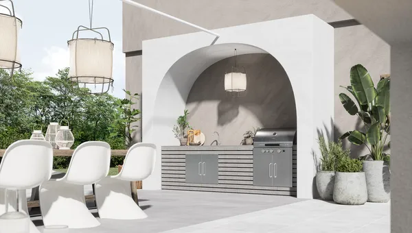 Dette utekjøkkenet inngår i stilen NATURLIG BOHEM designet av Aina Sollie Steen.