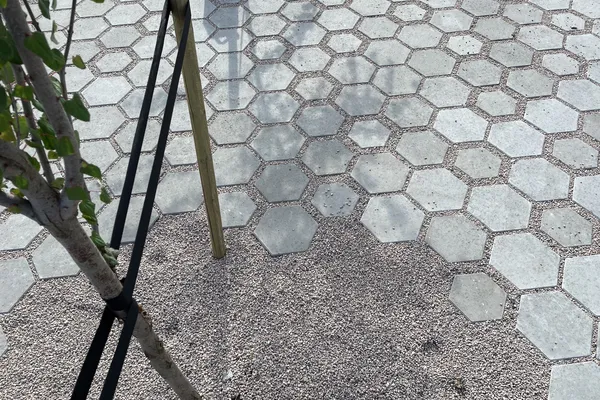 Utenfor nye Asdal skole er det langt et drenerende område med Asak FLYT® i kombinasjon med Helle Grå på gangfeltet ved bussholdeplassen.