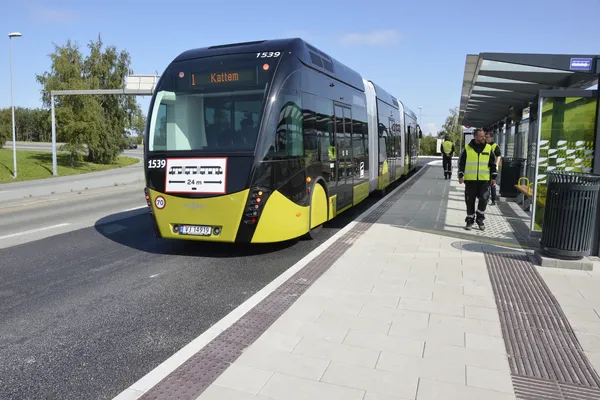 I forbindelse med nye Metrobuss i Trondheim ble det bygget nye holdeplasser i 2020. Her ble det benyttet Gangbaneheller i fargen grå.
