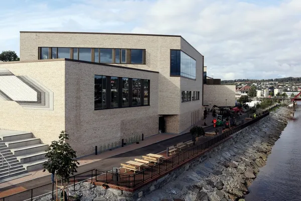 Det er lagt vekt på kvalitet i utbyggingen av det nylig overleverte kulturhuset i Steinkjer. Utenfor kulturhuset er bakken fargelagt med Arena og Gangbaneheller i fargen Sand.